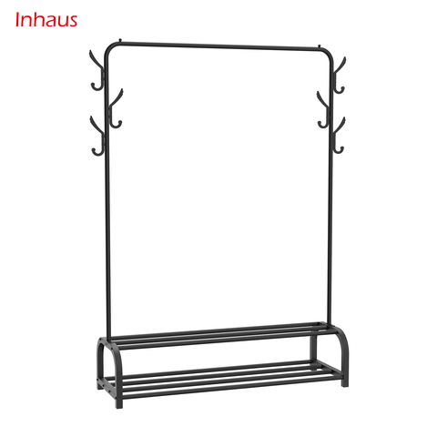 Rak Garmen Rel Pakaian Berdiri Bebas dengan Rak 2 Tingkat untuk Sepatu KOTAK dan 6 Kait Samping