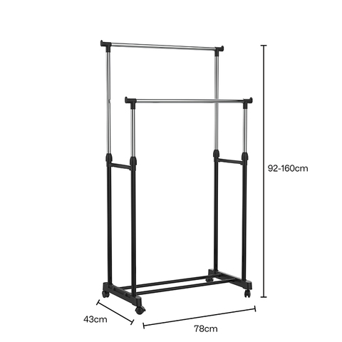 ダブルポールステンレススチール高さ調節可能折りたたみ式ハンガー棚付き